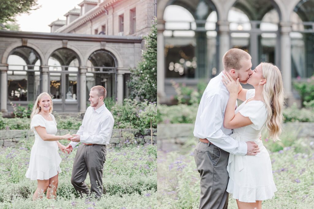 We started around the mansion grounds, using the gardens and pathways as our backdrop. Even in autumn, the greenery felt full and clean. Those spaces always work well for engagement sessions because they feel classic and timeless. It gave us a great place to warm up and ease into things.